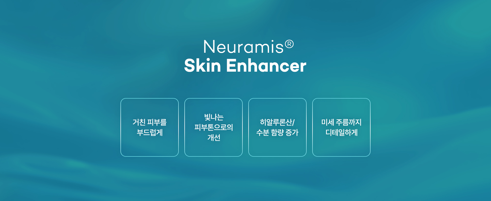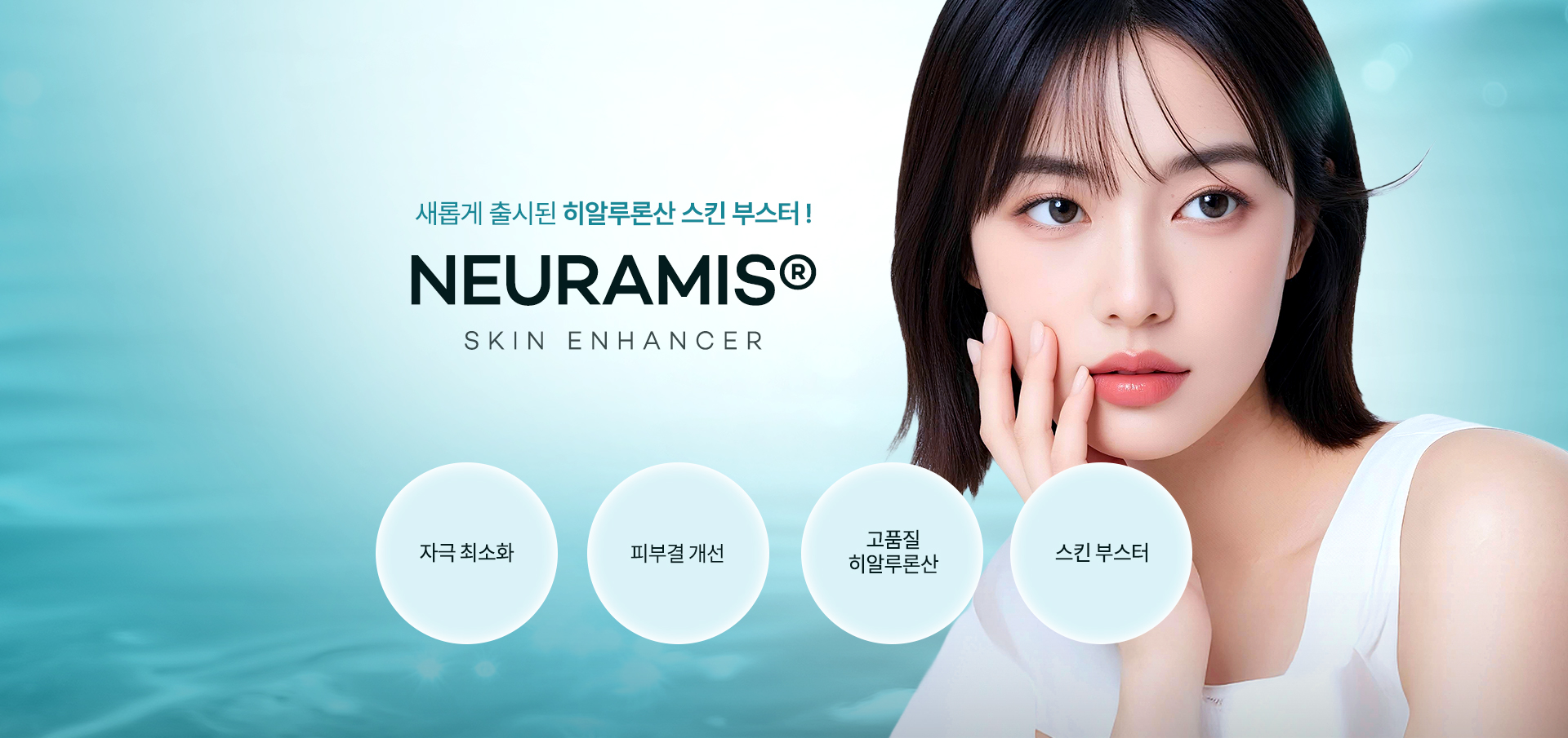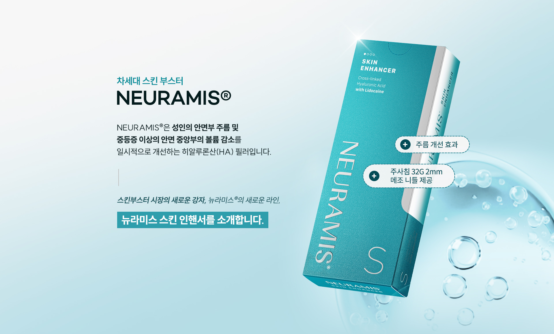 NEURAMIS은 성인의 안면부 주름 및 중등증 이상의 안면 중앙부의 볼륨 감소를 일시적으로 개선하는 히알루론산(HA) 필러입니다.