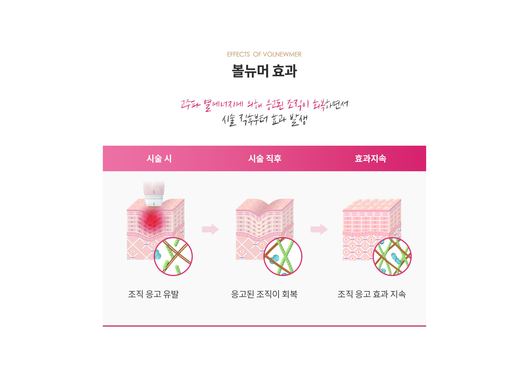 • 1 볼뉴머의 경우, 시술 후 1개월에 걸쳐 서서히 콜라겐 리모델링이 진행되며, 보통 3~5개월 주기로 재시술을 권장합니다.